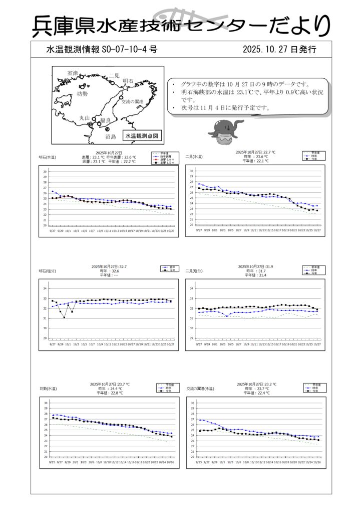 また、明石、明石二見は塩分、室津局は、塩分とクロロフィル量も観測しています。