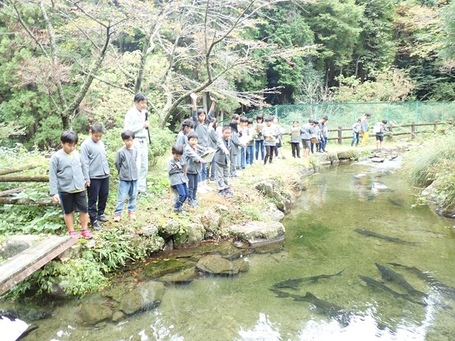 5年生になったら、次は炭火焼体験学習にきてください。そして、しぼった卵が成長して大きくなった魚をつかまえ、炭火で焼き、それを食べて「生命の大切さ」を学習してください。魚はそのときまで大切に育てておきます・・・。