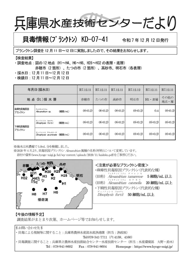 2025-12-12貝毒情報(プランクトン) KD-07-41号(播磨灘)