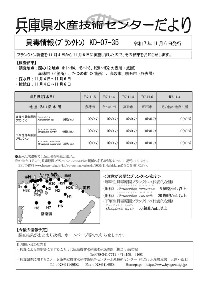 2025-11-06貝毒情報(プランクトン) KD-07-35号(播磨灘)