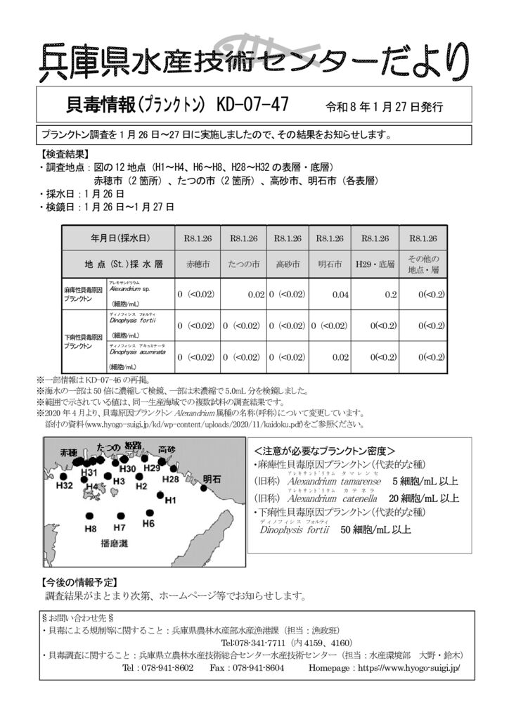 2026-01-27貝毒情報(プランクトン) KD-07-47号(播磨灘)