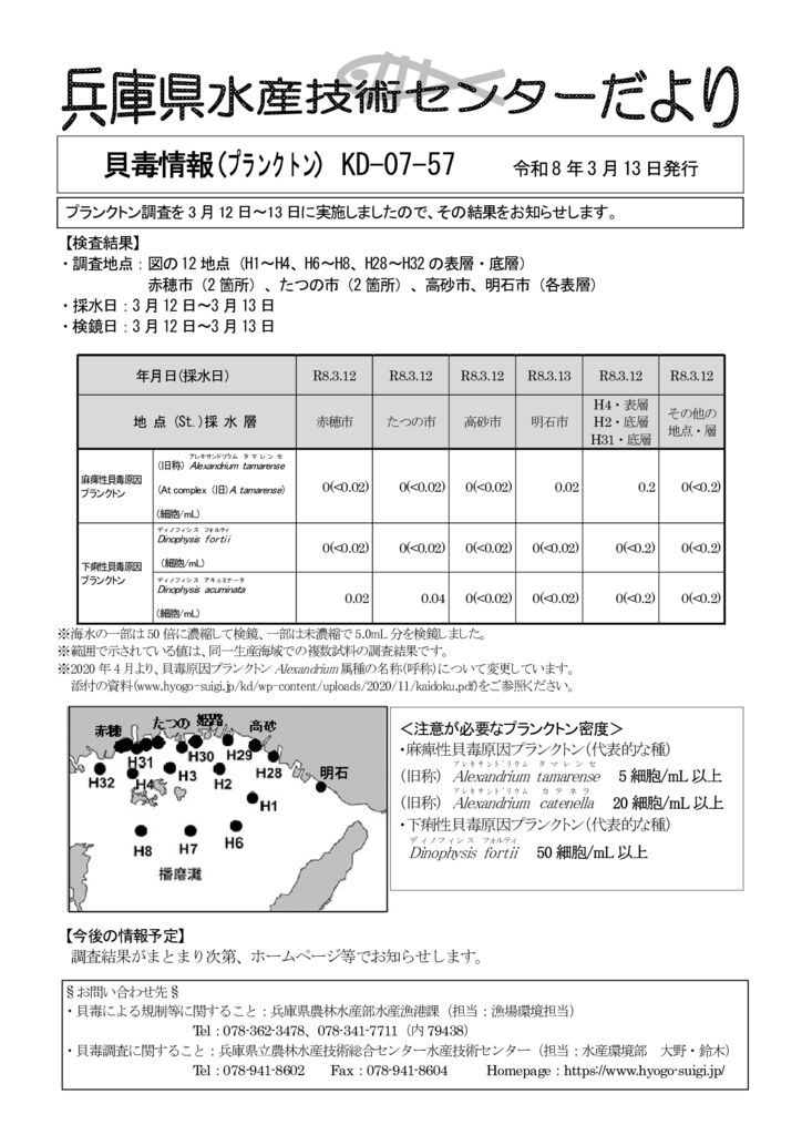 2026-03-13貝毒情報(プランクトン) KD-07-57号(播磨灘)