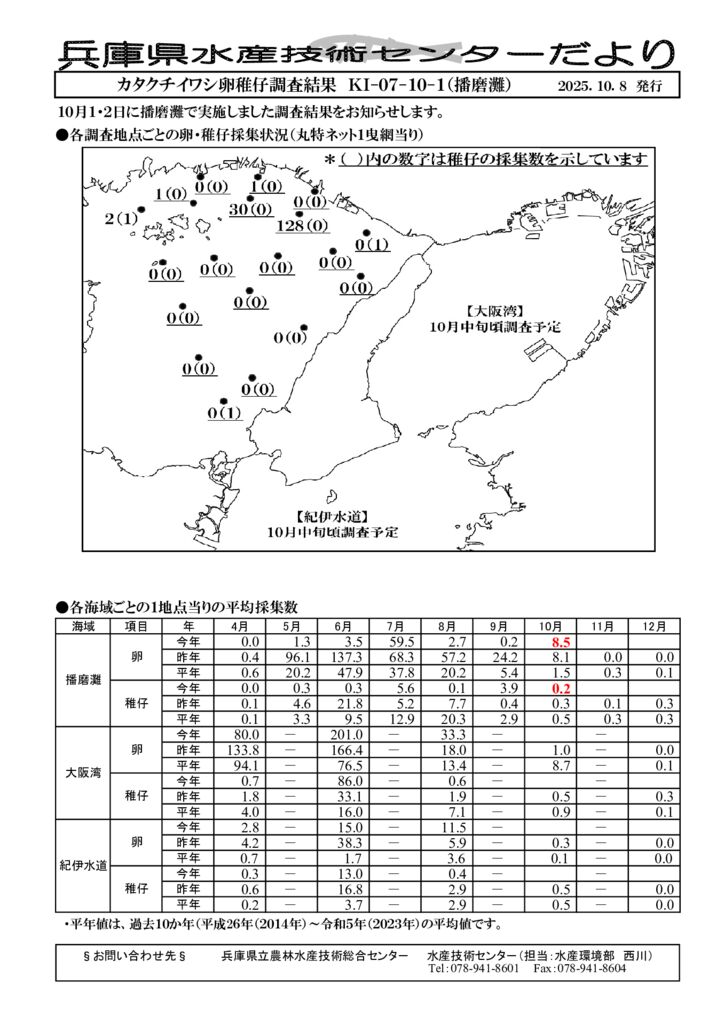 2025-10-08カタクチイワシ卵稚仔調査結果 KI-07-10-1(播磨灘)