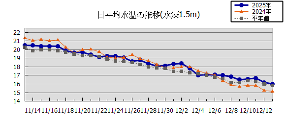 | 平年値 | 15.8℃ | 15.6℃ | 15.3℃ | 15.2℃ | 15.1℃ | 14.6℃ | 14.5℃ | 14.4℃ |