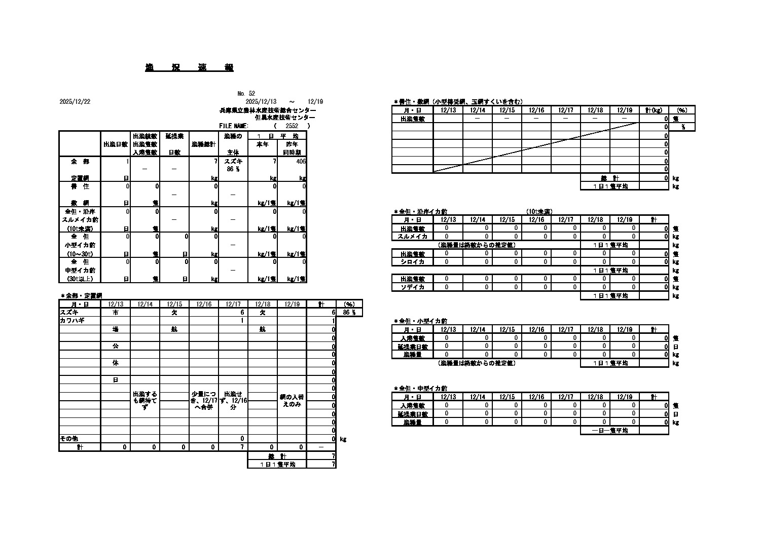 過去の漁況速報をご覧になりたい場合は、但馬水産技術センターまでお問い合わせください。
