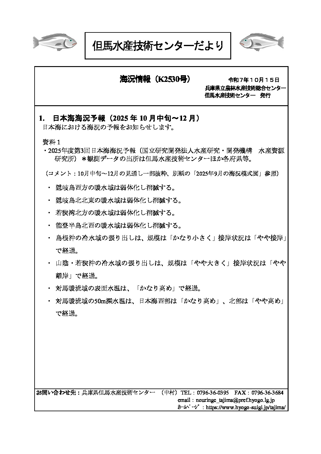 2025-10-15日本海海況予報:2025年10月中旬~12月(海況情報 K2530号)